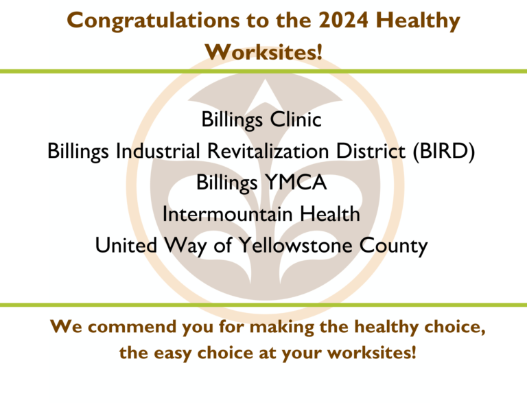 The Healthy Worksite Toolkit was developed in collaboration with local leaders in the health and business sectors and inspired by our 2019 Recognized Healthy Worksites. Yellowstone County businesses looking to start or improve their own worksite wellness initiatives may find the resource especially useful.